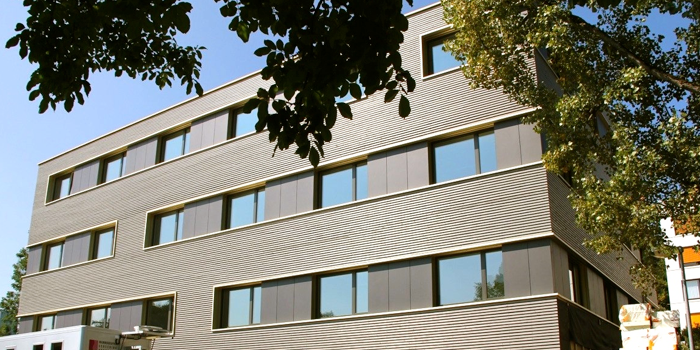 das gesundheitszentrum für die klinik stephanshorn beherbergt vier arztpraxen in den oberen geschossen und eine notfallpraxis im erdgeschoss.